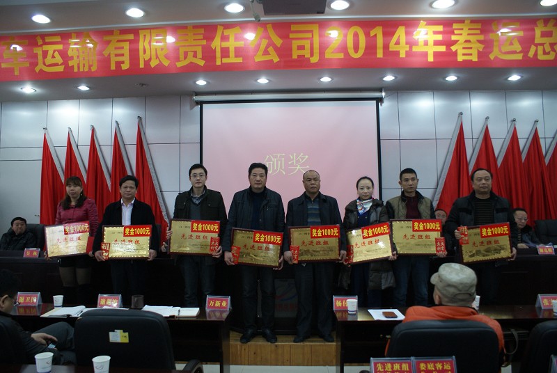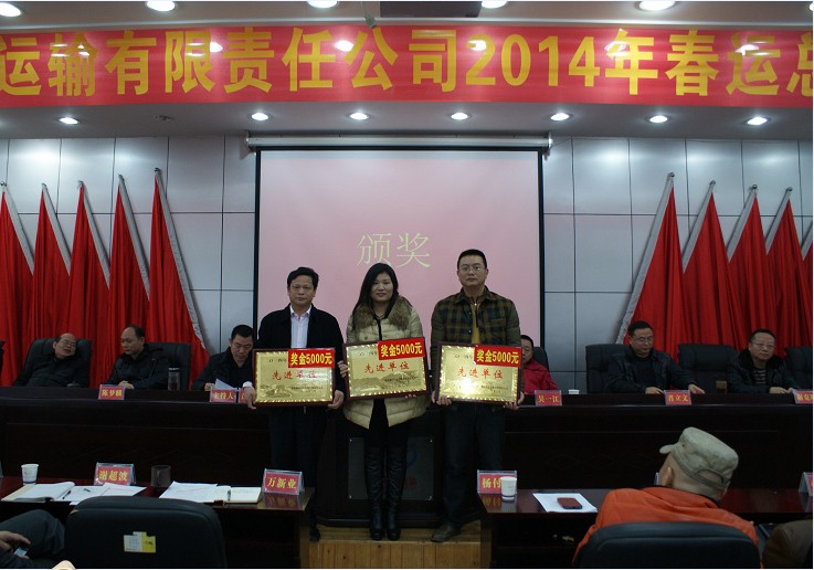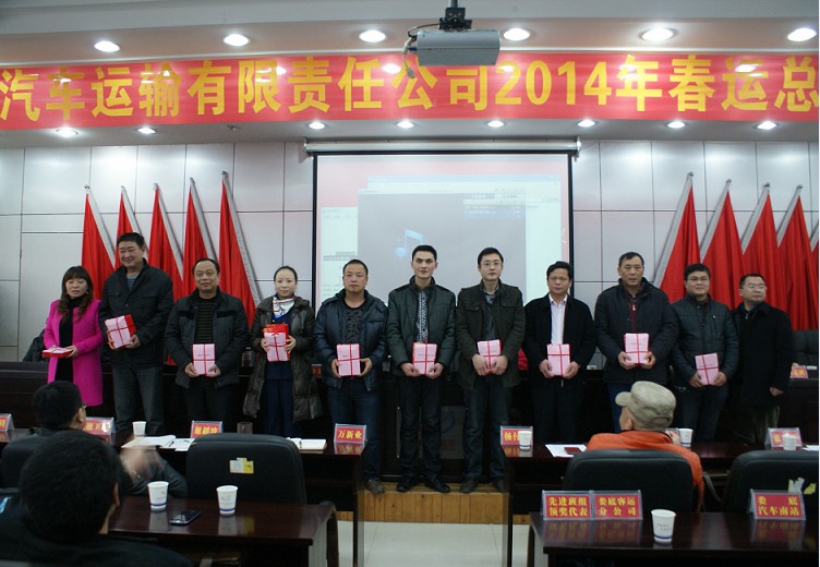 2014年春運(yùn)總結(jié)表彰會議先進(jìn)單位代表上臺領(lǐng)獎(jiǎng)