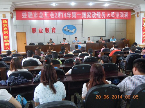 2014年6月20日上午9點(diǎn),由婁底湘運(yùn)職業(yè)技術(shù)培訓(xùn)學(xué)校承辦,婁底市總工會(huì)主辦的2014年第一期家政服務(wù)員培訓(xùn)班在湘運(yùn)職業(yè)技術(shù)培訓(xùn)學(xué)校五樓教室隆重舉行開班儀式,市總工會(huì)黨組成員、工會(huì)副主席譚紅衛(wèi),婁底湘運(yùn)公司董事、副總經(jīng)理兼工會(huì)主席謝克明等有關(guān)領(lǐng)導(dǎo)出席開班儀式。