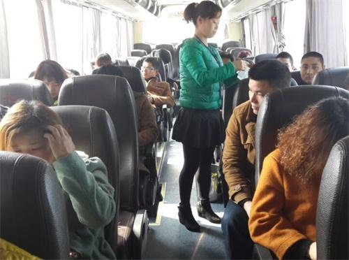 冷水江汽車(chē)站服務(wù)班員工上車(chē)檢票并檢查旅客安全帶佩戴情況