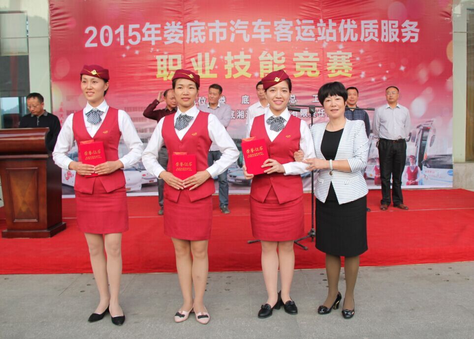 10月22日,由婁底市總工會(huì)和婁底湘運(yùn)集團(tuán)聯(lián)合舉辦的2015年婁底市汽車(chē)客運(yùn)站優(yōu)質(zhì)服務(wù)職業(yè)技能競(jìng)賽在婁底汽車(chē)南站圓滿落下帷幕。在為期兩天的比賽中,來(lái)自全市各縣市區(qū)的六支代表隊(duì),30名選手進(jìn)行了激烈角逐,婁底汽車(chē)南站代表隊(duì)以雄厚實(shí)力斬獲團(tuán)體一等獎(jiǎng),同時(shí)被授予“婁底市五一先鋒集體”榮譽(yù)稱號(hào),婁底客運(yùn)分公司代表隊(duì)、新化分公司代表隊(duì)獲得團(tuán)體二等獎(jiǎng)。婁底汽車(chē)南站王菲成功摘得個(gè)人桂冠,并被授予“婁底市五一標(biāo)兵”榮譽(yù)稱號(hào)。婁底客運(yùn)分公司邱媚等獲得個(gè)人二等獎(jiǎng)。新化分公司周海燕等獲得個(gè)人三等獎(jiǎng)。婁底市人大常委會(huì)黨組副書(shū)記、副主任、市總工會(huì)主席肖有勝,市總工會(huì)黨組書(shū)記、常務(wù)副主席鄧煥章,公司董事長(zhǎng)兼總經(jīng)理彭瑞華等領(lǐng)導(dǎo)出席了開(kāi)、閉幕式典禮。