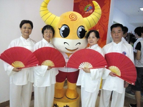 “白袍紅扇功夫令,削撩架推手法精,剛健優(yōu)美韻味純,自強不息太極人”,開幕式的第四個文藝表演節(jié)目,是充滿飄逸美感和武術(shù)剛陽之氣的太極功夫扇隊手持紅扇,伴隨著音樂表演,精彩的表現(xiàn)贏得了觀眾的陣陣掌聲,來自湘運太極站的李定紅、彭玉梅、曾吉福、何文選四人的身影出現(xiàn)在了這支優(yōu)秀的表演隊伍中。這四人通過層層選拔脫穎而出,被選入開幕式太極功夫扇表演隊。為了備戰(zhàn)開幕式表演,在兩個多月排練中,他們克服天氣炎熱、訓(xùn)練強度大等困難,全身心投入到訓(xùn)練中,充分展示了婁底湘運人團(tuán)結(jié)向上,勇于拼搏的精神。